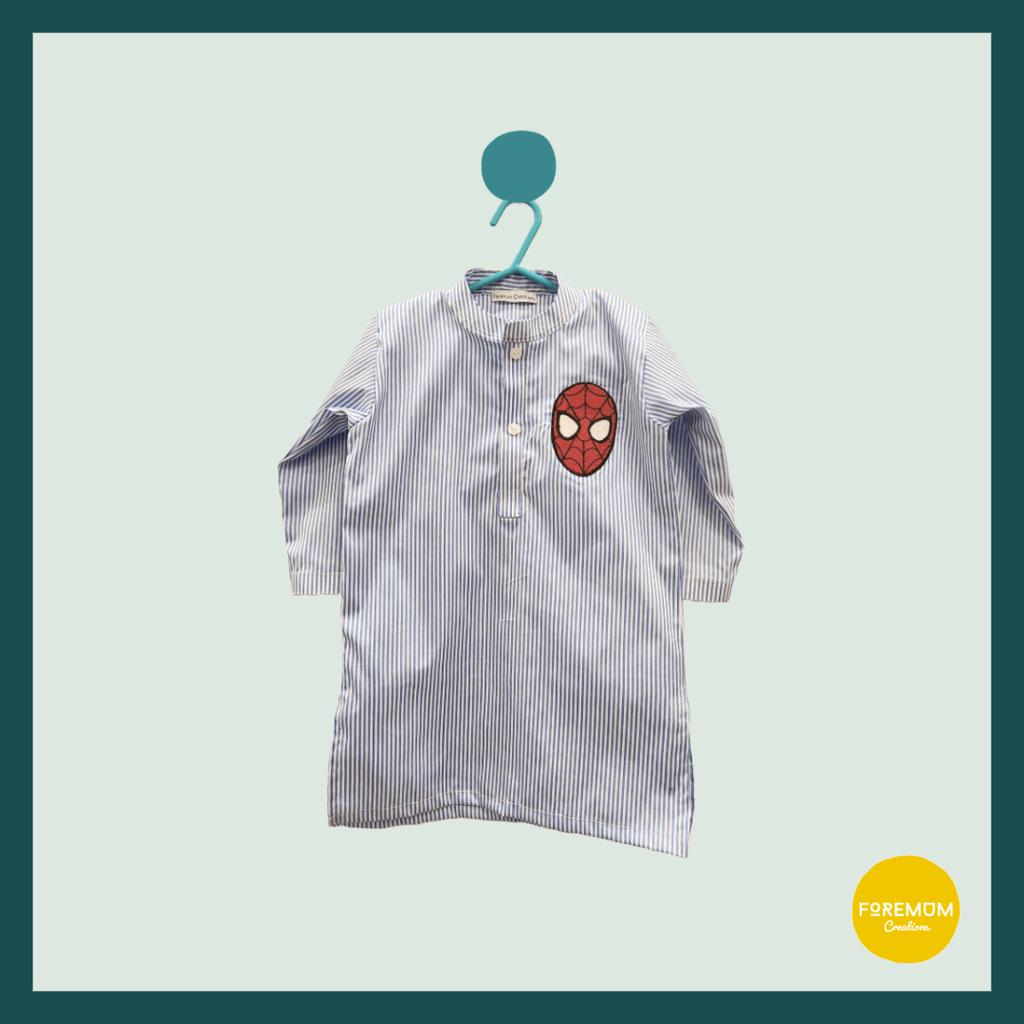 Unleash his inner hero with our Blue Striped Spiderman Cotton Kurta, designed to make him feel like a superhero in style!