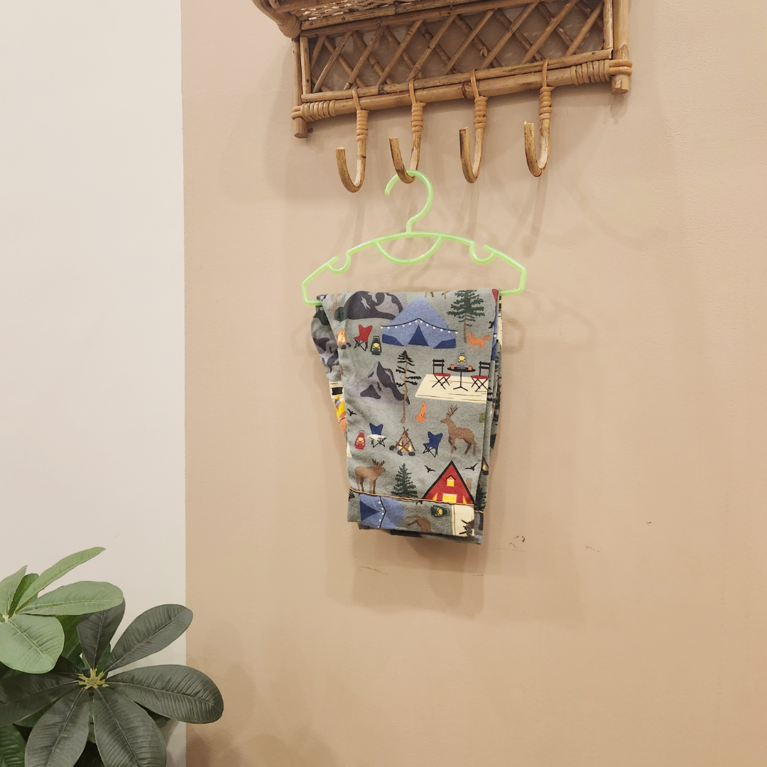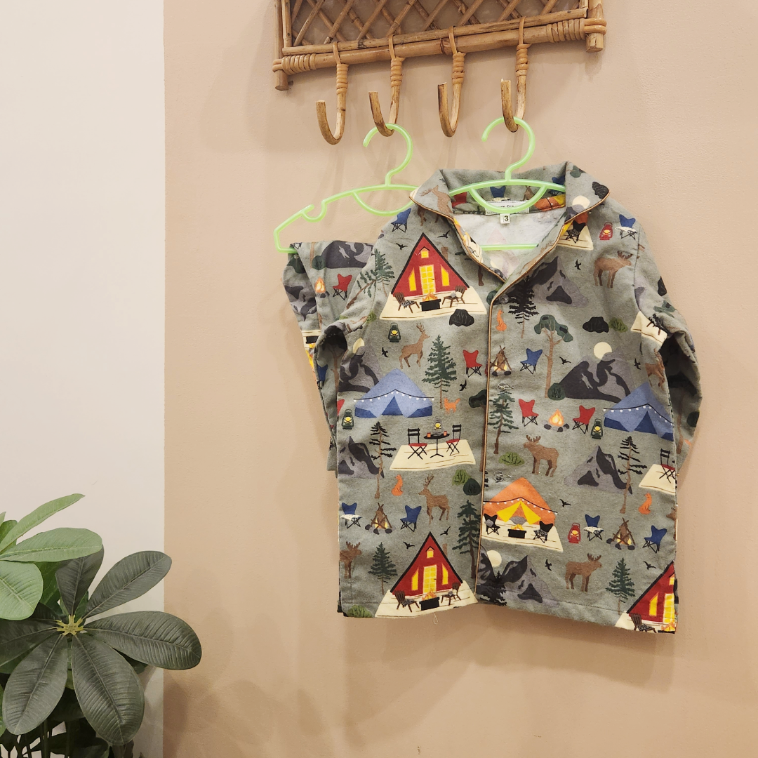 Drift into adventure with the Cozy Campout Nightwear Set – featuring playful tents, forest friends, and campfire charm for snuggly nights under starry dreams!
