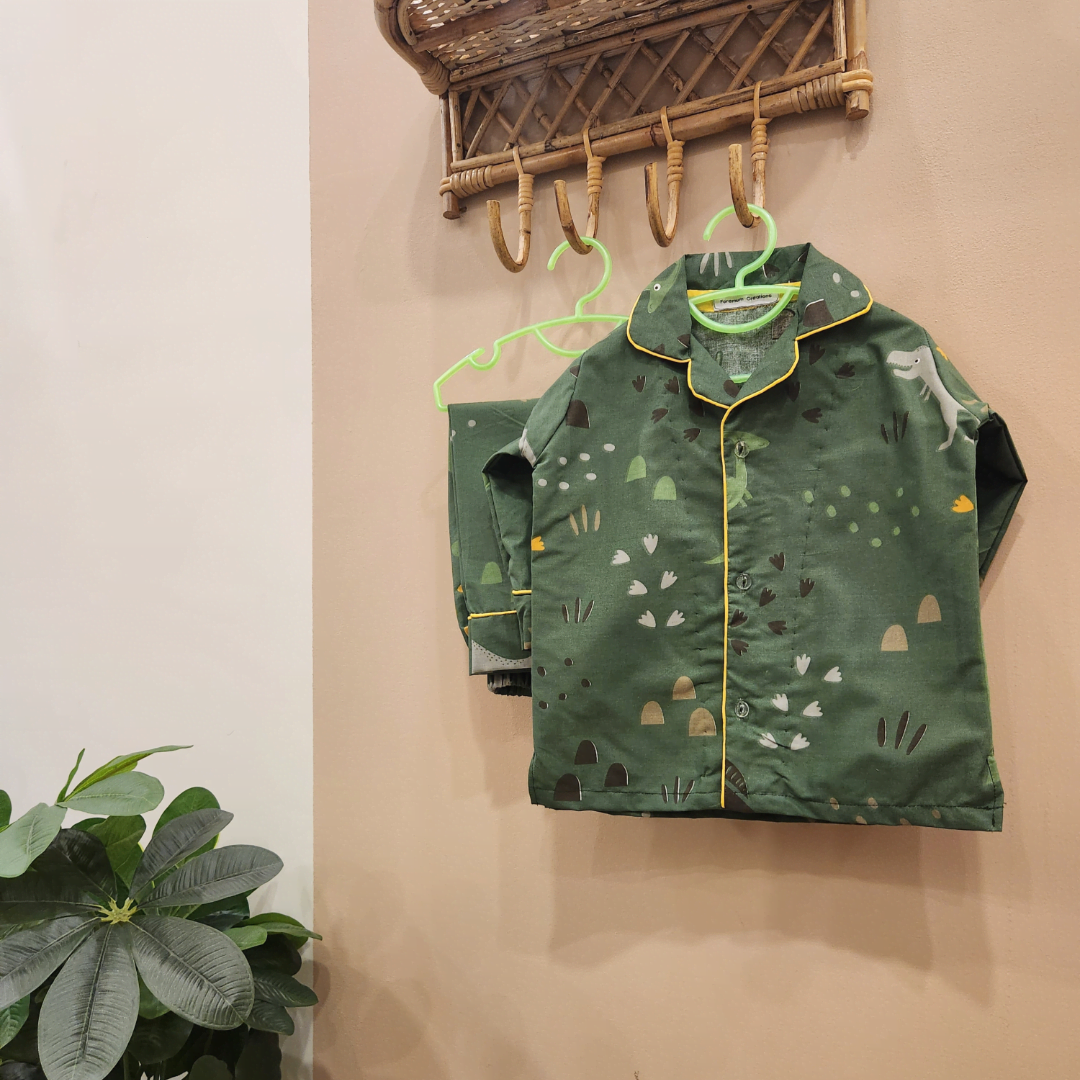 Unleash bedtime adventure with our 'Dinos In Hiding' cotton nightsuit! It's cozy, fun, and perfect for little explorers who dream big!