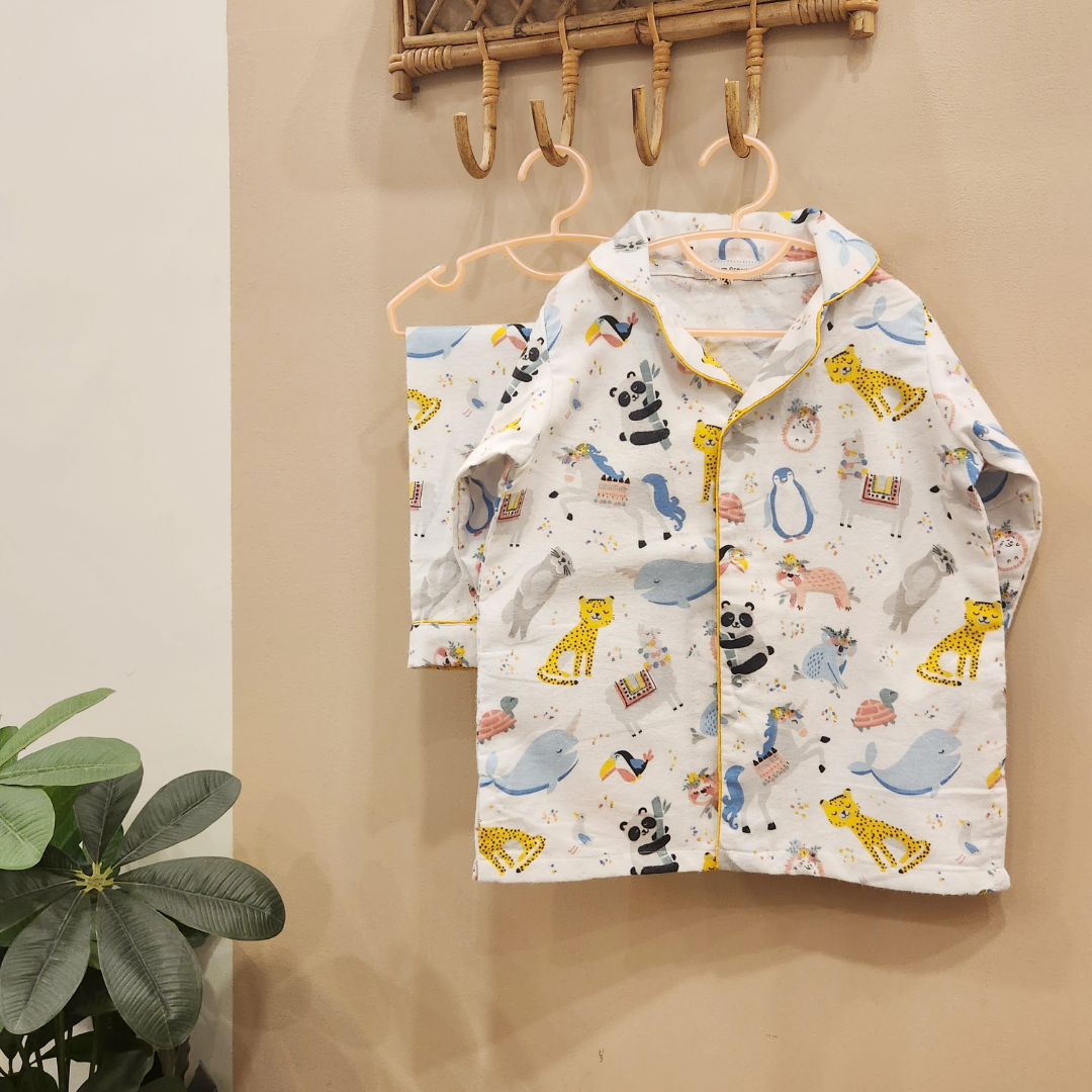 Filled with playful creatures and soft pastel hues, the Dreamy Safari Nightwear Set brings a world of bedtime wonder to your little one’s dreams!